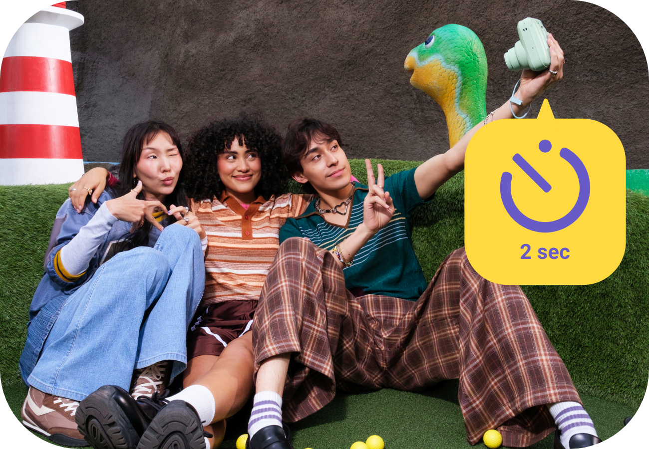 Choose 10-seconds for group shots and switching up angles, or go with 2-seconds to reduce blur from handheld moments like selfies.