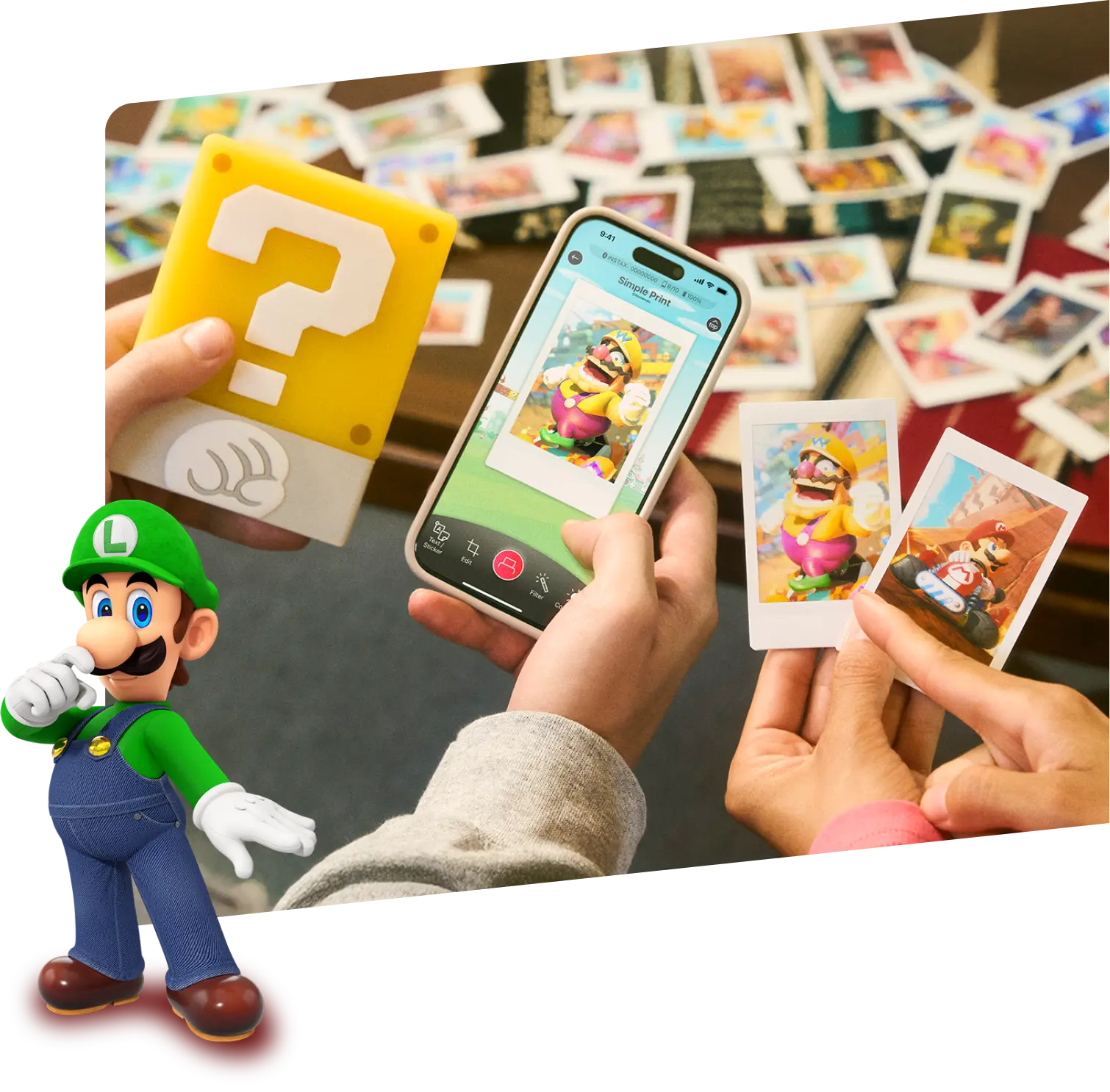 Stampa le cornici dei tuoi personaggi Nintendo preferiti sulle tue foto instax™ per divertirti ancora di più!