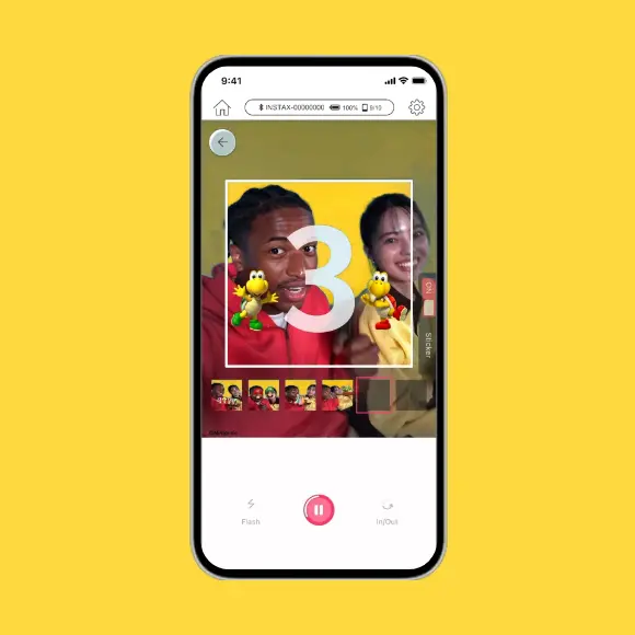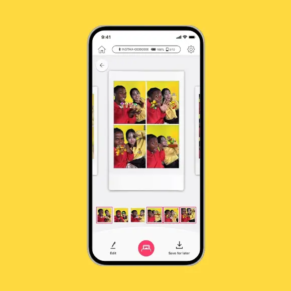 Le foto stampate possono anche essere salvate come una instax Animation™. Modifica lo sfondo, salva nella tua galleria fotografica!