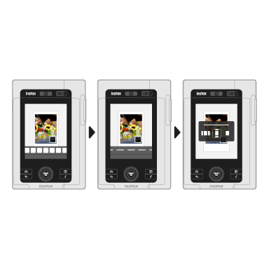 Create instax™ photos of your special memories by combining a selfie with a scenic background image! Choose from four different layouts.
