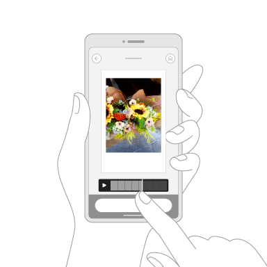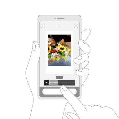 Create animations by combining multiple photos and the sounds recorded when they were shot! Scan the QR code to play the video, and save it on the app. Choose from three different animation styles.