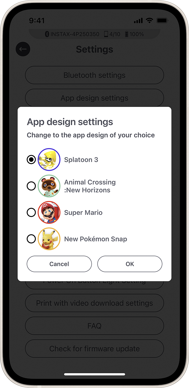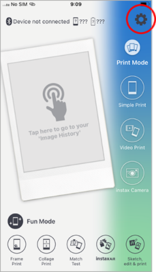 3. Launch the instax mini Link™ app, then tap the gear icon.