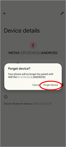 - Open the Bluetooth settings screen of a smartphone other than the one you wish to connect. Check if any previously-connected Links are displayed. Links are displayed as INSTAX-XXXXXXX. Delete any Links that are displayed.