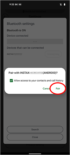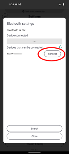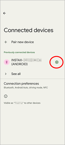 2. If there is a connected device named "INSTAX-XXXXXX (ANDROID)", tap the gear icon next to that device.