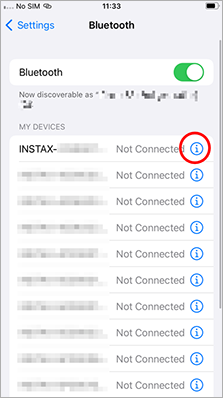 2. If there is a connected device named "INSTAX-XXXXXX (iOS)", tap the (i) icon next to that device.